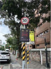 為降低行人用路危險,透過裝設速度偵測及顯示設備,提醒駕駛車輛當前速度。